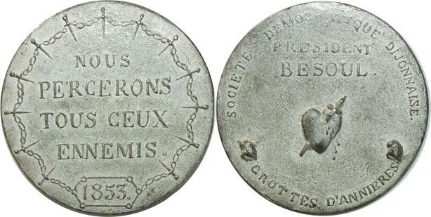 O7279 Rare Médaille Sociétés Secrètes Napoléon III Grottes Asnières 1853 Besoul