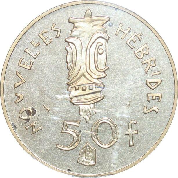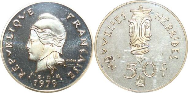 O7310 Finest 50 Francs Nouvelles Hébrides 1979 Piefort PCGS MS67 Argent FDC