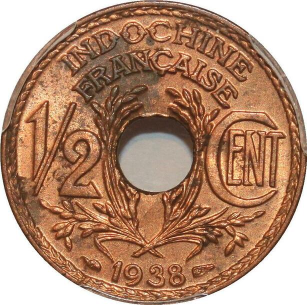 O7314 Scarce French Indochina 1/2 Cent 1938 PCGS MS63 Red Luster
