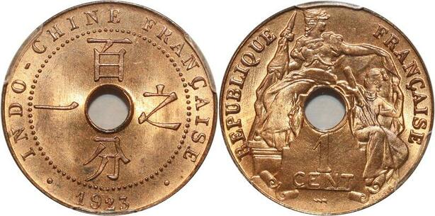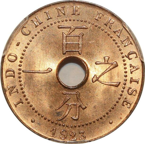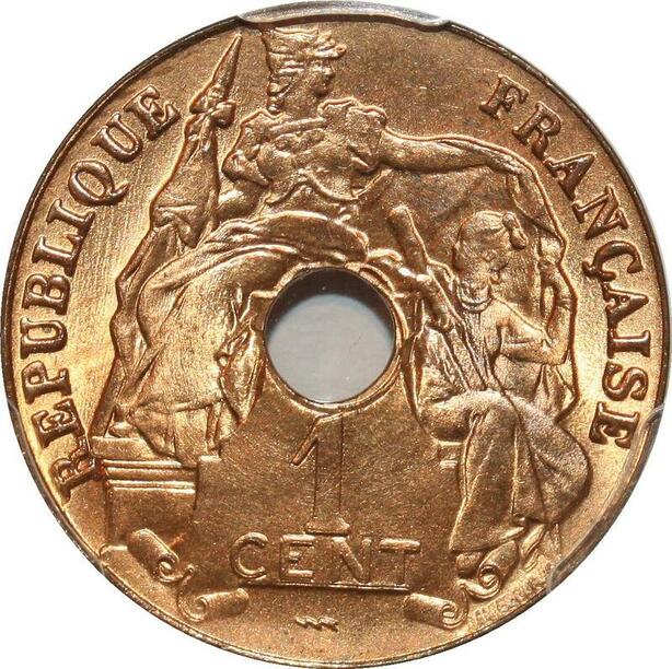 O7318 TOP POP French Indochina 1 Cent 1923 A Paris NGC MS65 Red Luster