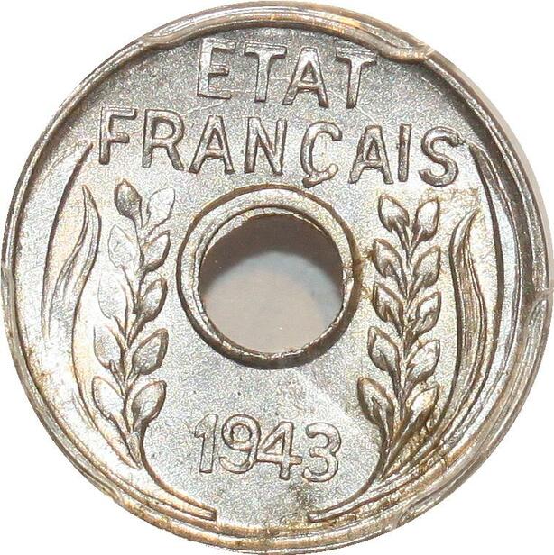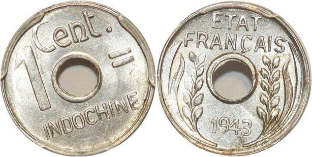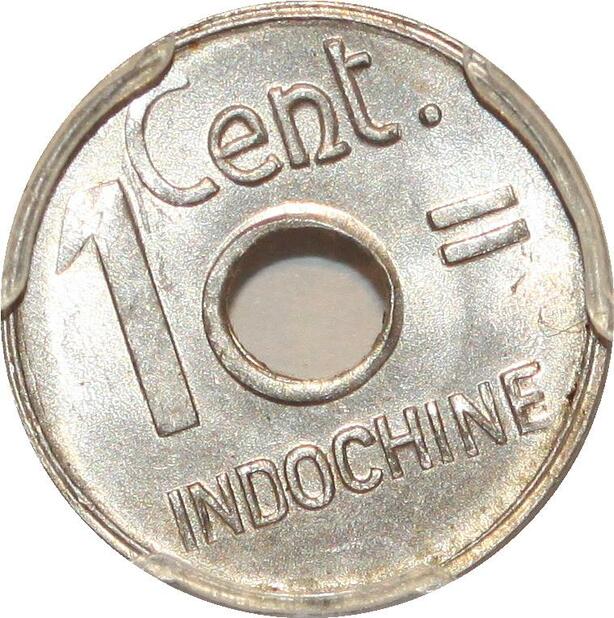 O7326 Rare Indochina 1 Centime 1943 Rotation Error PCGS MS64