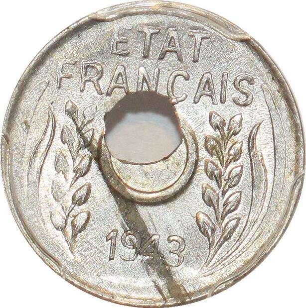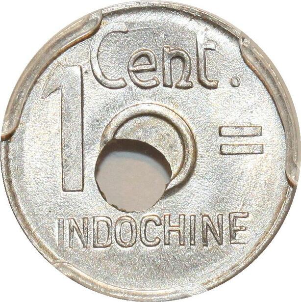 O7327 Very Rare Indochina Mint Error Off Planchet 1 Centime 1943 PCGS MS64