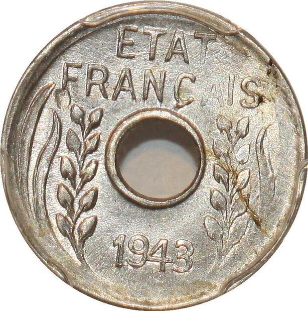 O7328 Rare Indochina 1 Centime 1943 Rotation Error PCGS MS64