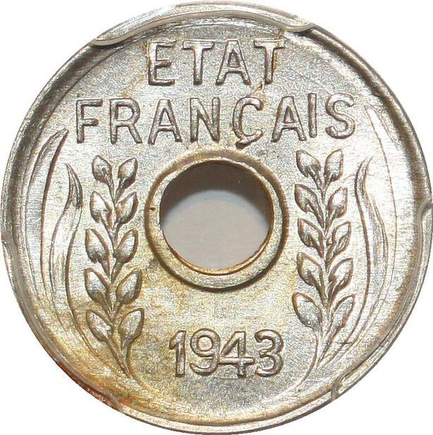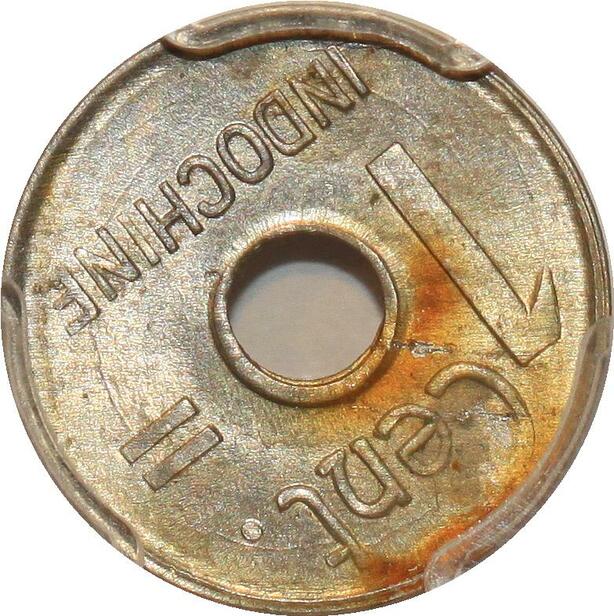 O7329 Rare Indochina 1 Centime 1943 Rotation Error PCGS MS63