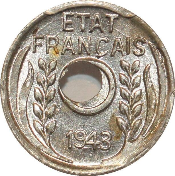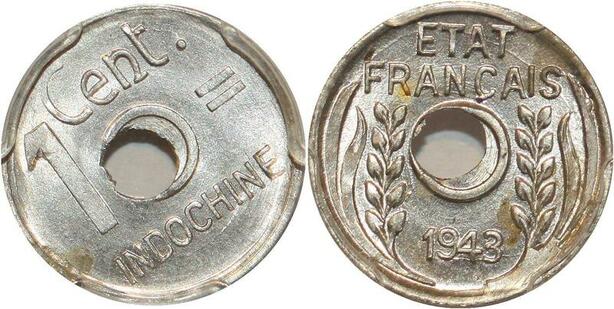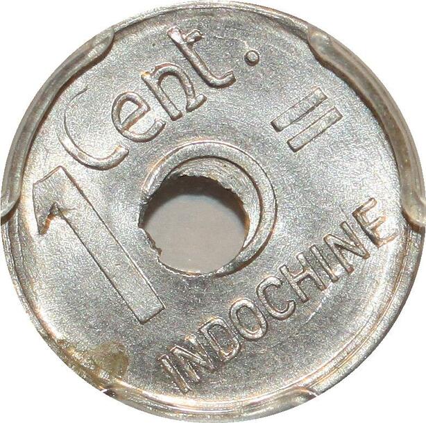 O7332 Rare Error Décentrée Indochina 1 Centime 1943 PCGS MS63