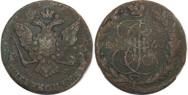 O7351 Russia Russie 5 Kopecks Catherine II 1766 EM Ekaterinbourg ->M offer