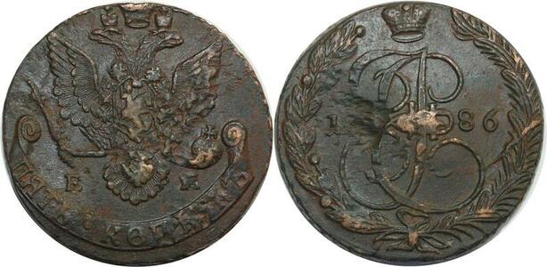 O7373 Russia Russie 5 Kopecks Catherine II 1786 EM Ekaterinbourg ->M offer