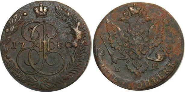 O7379 Russia Russie 5 Kopecks Catherine II 1780 EM Ekaterinbourg ->M offer