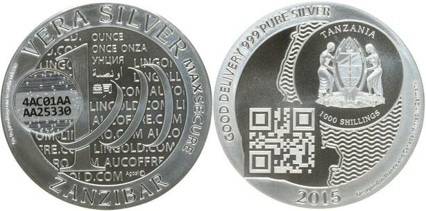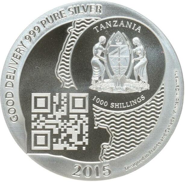 O7451 Tanzania 1000 Shillings Zanzibar 2015 Qr Code oz 999% Silver PF