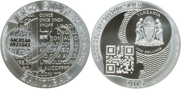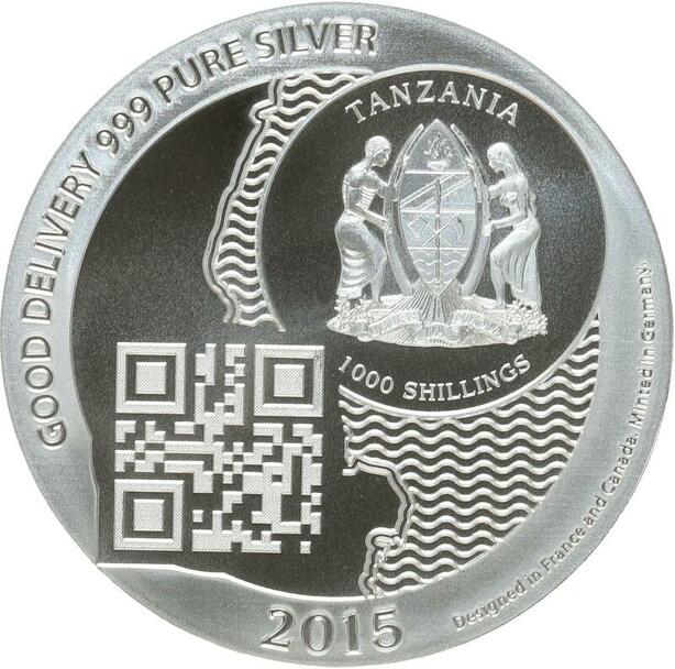 O7455 Tanzania 1000 Shillings Zanzibar 2015 Qr Code oz 999% Silver PF