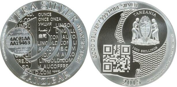 O7462 Tanzania 1000 Shillings Zanzibar 2015 Qr Code oz 999% Silver PF