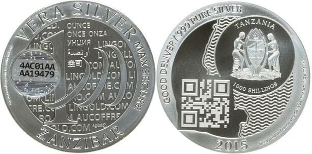 O7463 Tanzania 1000 Shillings Zanzibar 2015 Qr Code oz 999% Silver PF