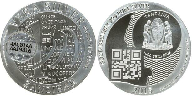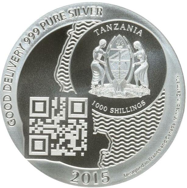 O7472 Tanzania 1000 Shillings Zanzibar 2015 Qr Code oz 999% Silver PF