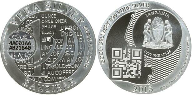 O7475 Tanzania 1000 Shillings Zanzibar 2015 Qr Code oz 999% Silver PF