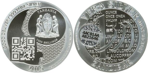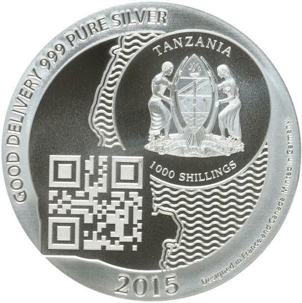 O7479 Tanzania 1000 Shillings Zanzibar 2015 Qr Code oz 999% Silver PF