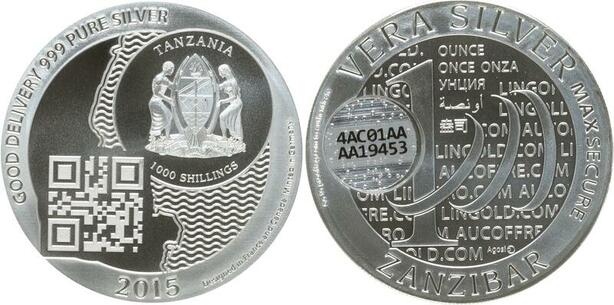 O7488 Tanzania 1000 Shillings Zanzibar 2015 Qr Code oz 999% Silver PF