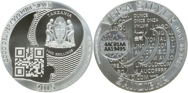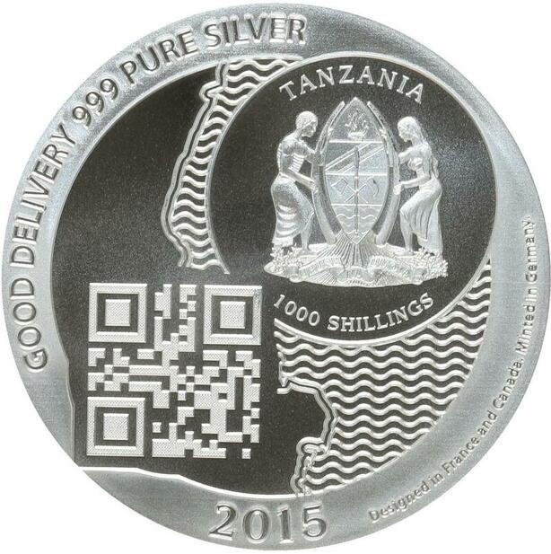 O7489 Tanzania 1000 Shillings Zanzibar 2015 Qr Code oz 999% Silver PF