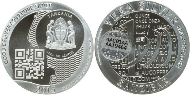 O7491 Tanzania 1000 Shillings Zanzibar 2015 Qr Code oz 999% Silver PF