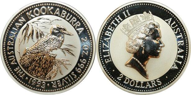 O7736 Australia 2 Dollars Elizabeth II Koobaburra 1993 2 oz 999% Silver PF