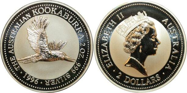 O7739 Australia 2 Dollars Elizabeth II Koobaburra 1996 2 oz 999% Silver PF