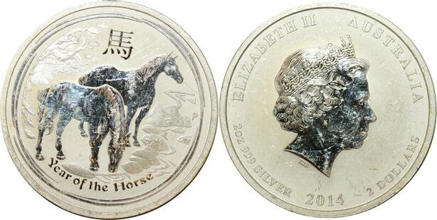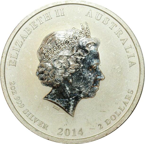 O7744 Australia 2 Dollars Elizabeth II Year Horse 2014 2 oz 999% Silver PF