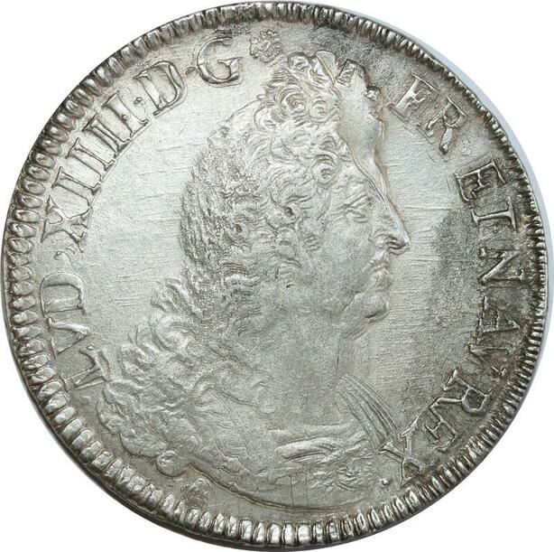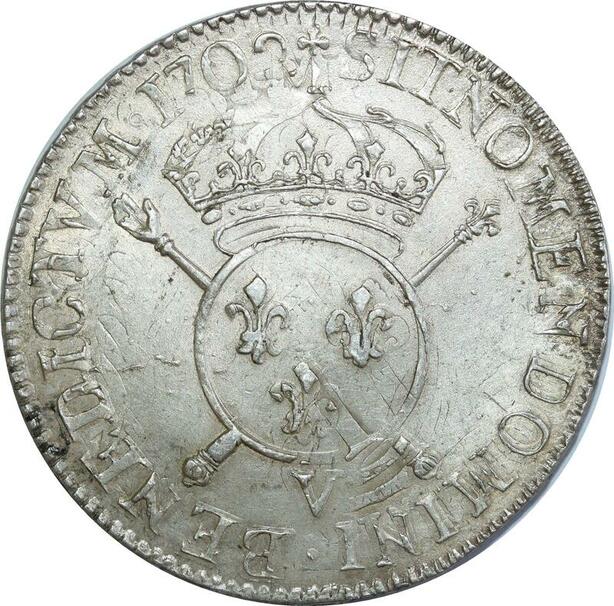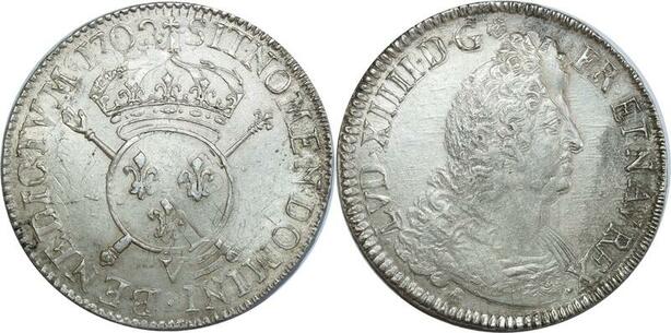 O7755 Rare France Ecu Louis XIV insignes 1702 V TroYes RF Argent SUP !!! ->M offre