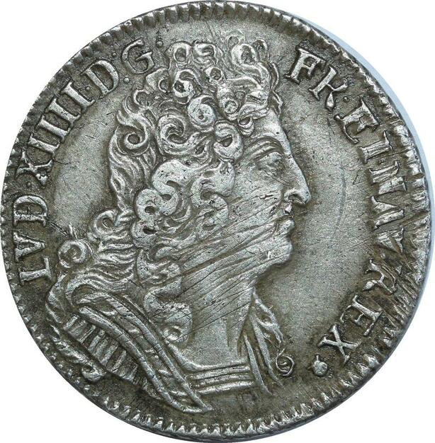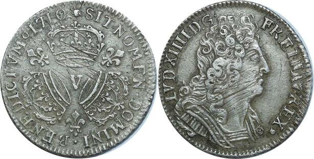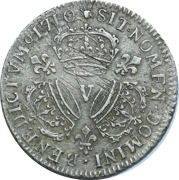 O7762 Rare France 1/4 Ecu Louis XIV 3 couronnes 1710 V Troyes Argent Silver TTB+