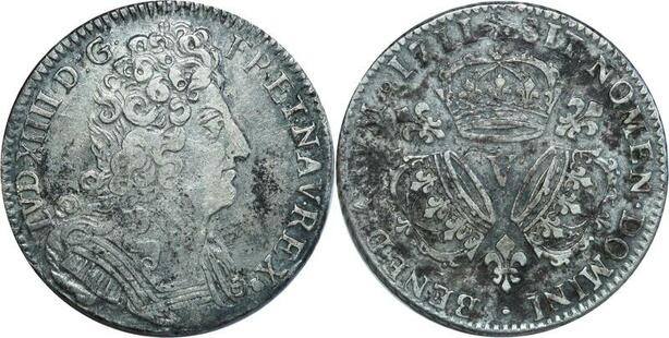 O7763 Rare France 1/4 Ecu Louis XIV 3 couronnes 1711 V Troyes Argent Silver ->M offre