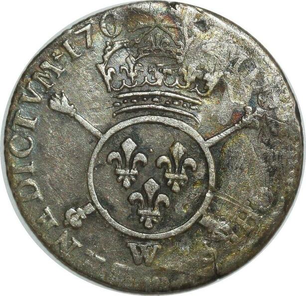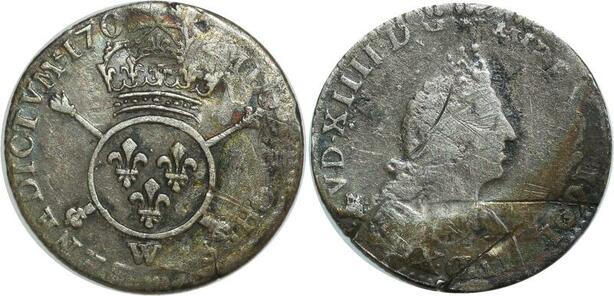 O7770 France 1/12 Ecu Louis XIV insignes 1702 W Lille Argent Silver ->M offre