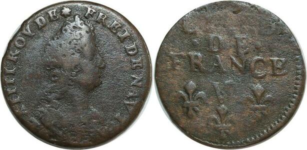 O7774 France Liard Louis XIV cuivre 3e type 169? - V TroYes 1638-1715->Make offer