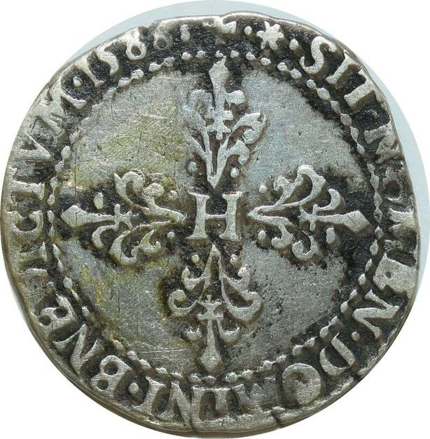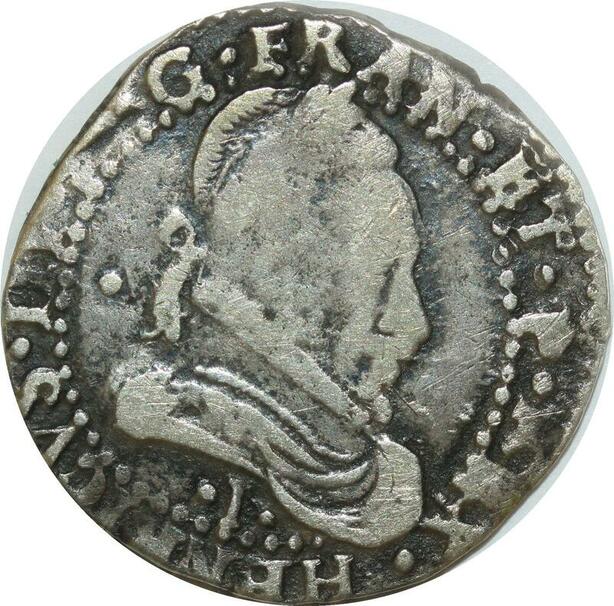 O7836 Rare France Demi Franc au col plat Henri III 1588 I Limoges argent ->Make offer