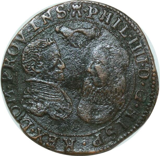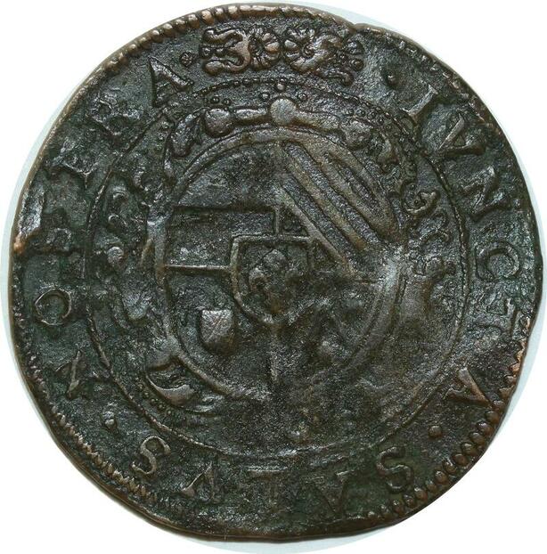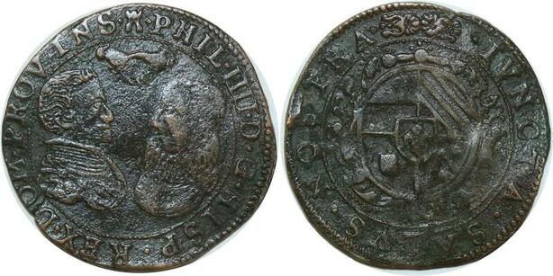 O7843 Rare Jeton Flandres Mariage Philippe IV & Anne Marie d'Autriche 1649