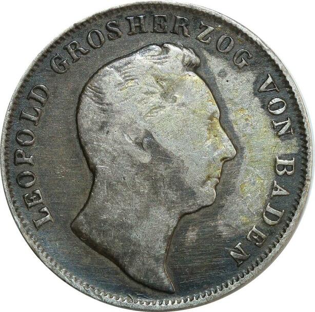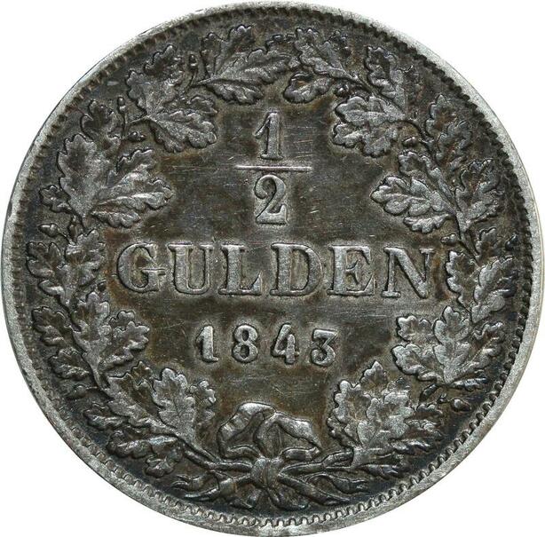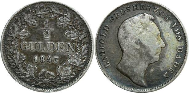 O7927 German States Baden 1/2 Gulden Léopold 1843 Silver ->M offer