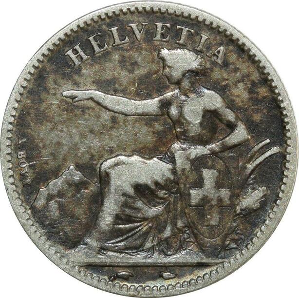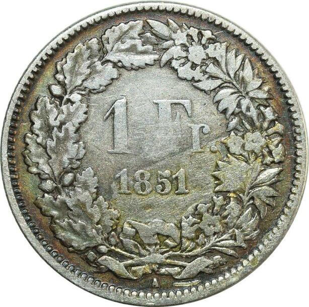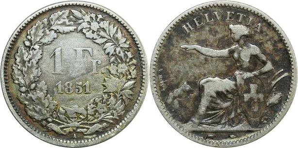 O7937 Switzerland 1 Franc Helvetia 1851 B Berne Bovy Argent Silver ->M offer