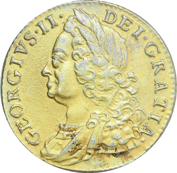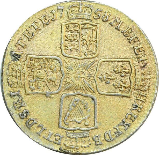 O7942 Scarce British Hannover Shilling George II 1758 Golden Guinea Silver AU