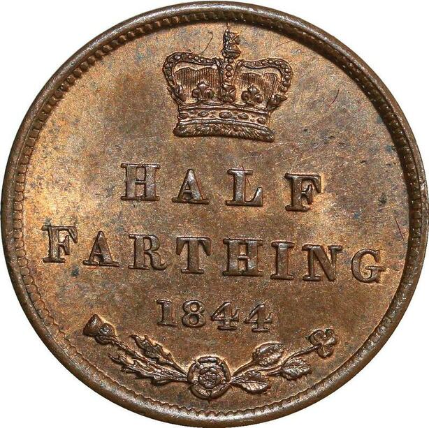O7943 Scarce Great Britain 1/2 Farthing Victoria 1844 BU !!! UNC !!! Red