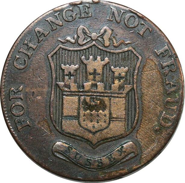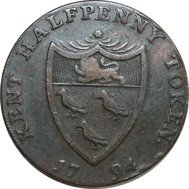 O7955 Uk Great Britain Halfpenny Token Kent Sussex For Change No Fraud 1794