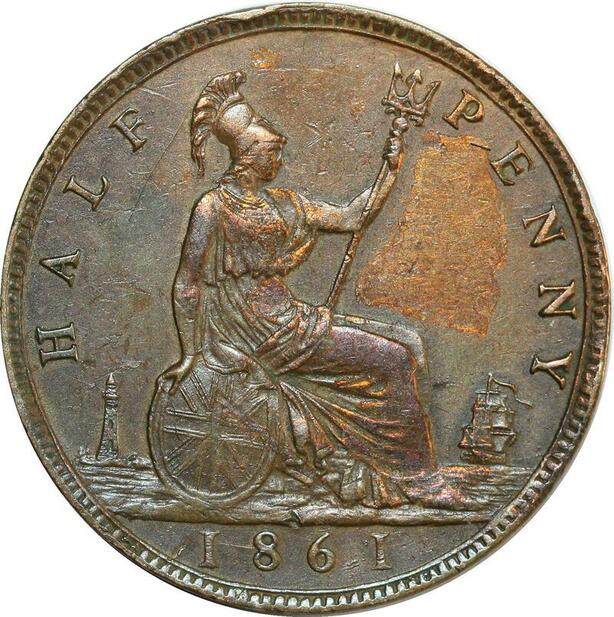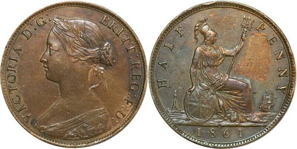 O7977 Great Britain Halfpenny 4 Berries in Wreath Victoria 1861 ->M offer