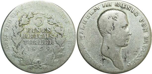 O7988 German States Prussia 1/3 Thaler Friedrich Wilhelm III 1809 A Silver