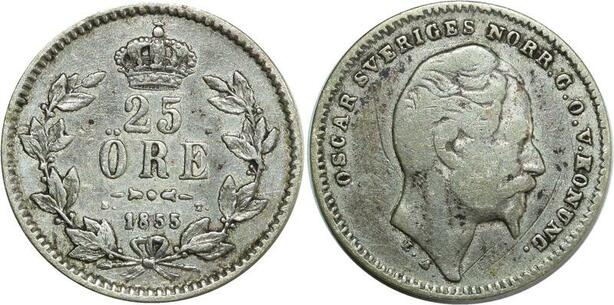 O7999 Schweden Sweden 25 Öre Oskar I 1855 ST Silver ->M offer
