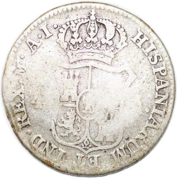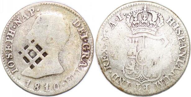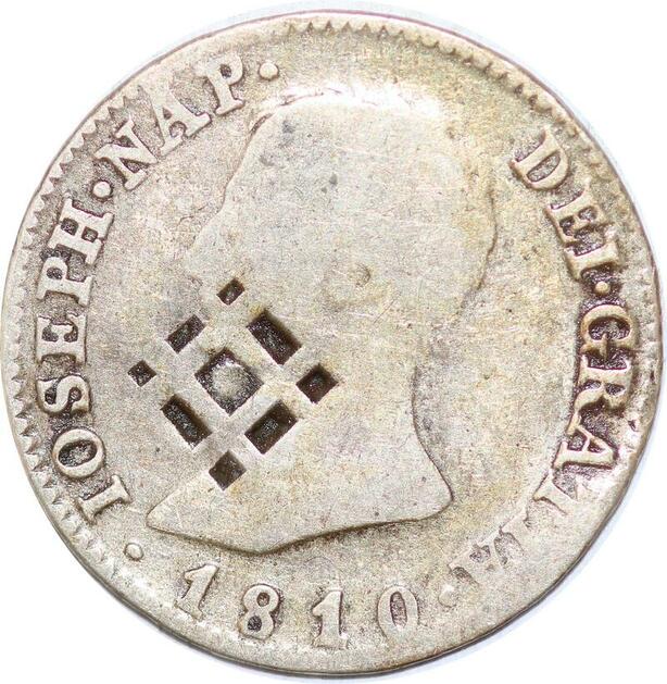 P0922 Cuba 2 Reales Joseph Napoleon 1810 1841 Countermarked Treillis Silver