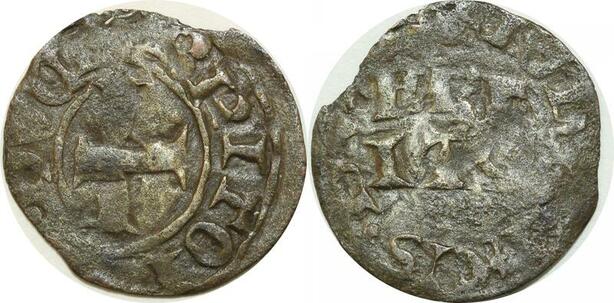 P1191 Rare France Bretagne Denier Tournois Jean de Montfort Captif 1343 Vannes