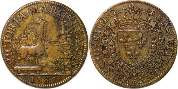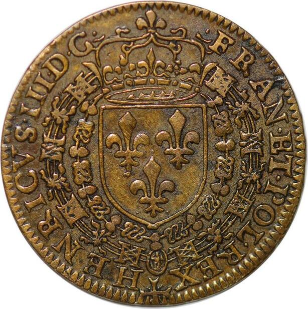 P3308 Rare France Jeton Henri III Victoria Martis 1586 Collier ordre Saint Michel