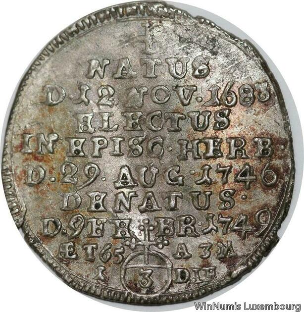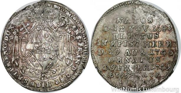 P8001 Germany Würtzbourg Anselm Franz von Ingelheim 3 Kreuzer Groschen 1749 AU