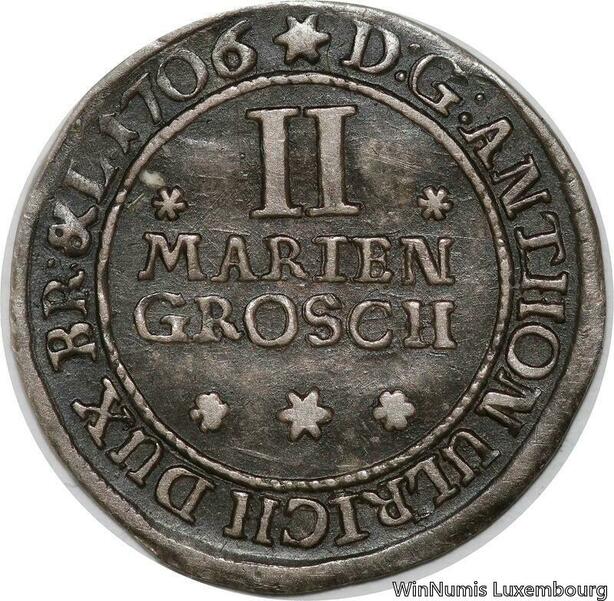 P8015 INEDIT Brunswick Wolfenbüttel 2 Mariengroschen Anton Ulrich 1706 AU
