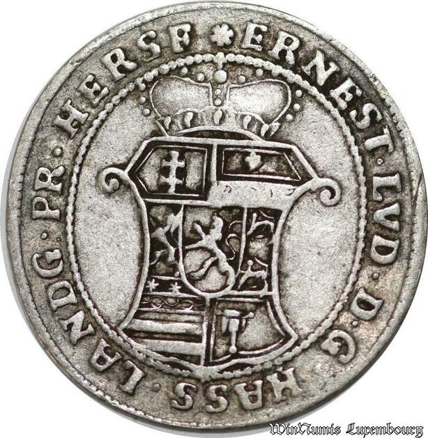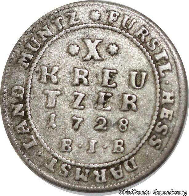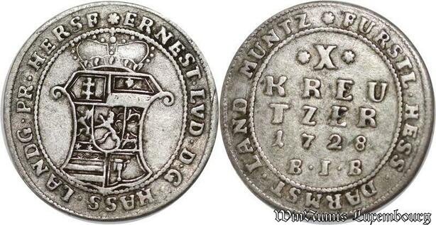 P8020 German States Hesse Darmstadt 10 Kreuzer Ernst Ludwig 1728 BIB Silver