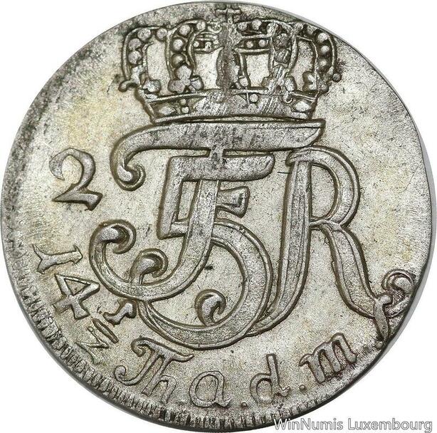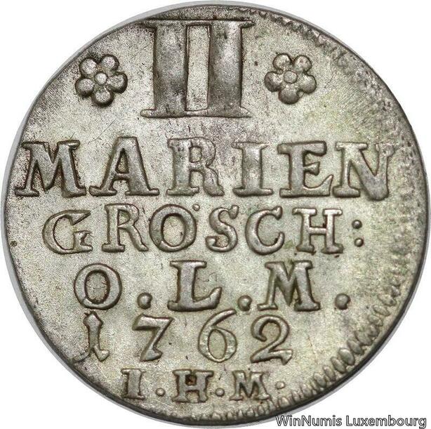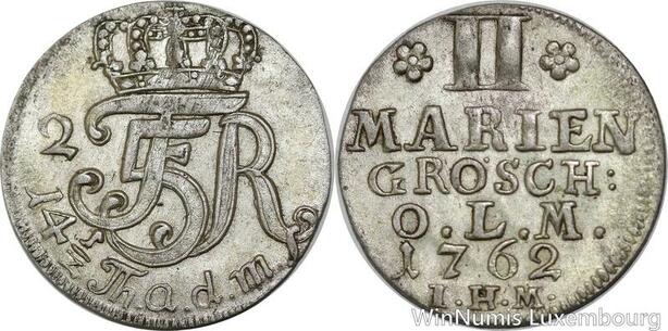 P8028 Rare Denmark Oldenburg 2 Mariengroschen Friedrich 1762 IHM Silver AU