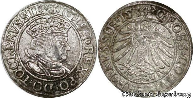 P8030 Rare Poland Grosz Groschen Sigismund I Stary 1534 Toru Silver > Offer