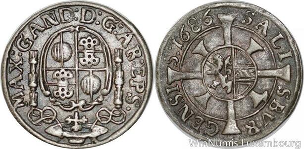 P8036 Austria Erzbistum Salzburg Kreuzer Max Gandolph Graf Küenburg 1686 Silver