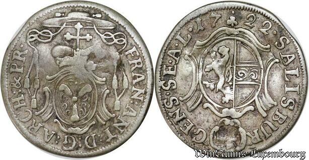 P8039 Austria Bishop Salzburg 4 Kreuzer Franz Anton von Harrach 1722 Silver